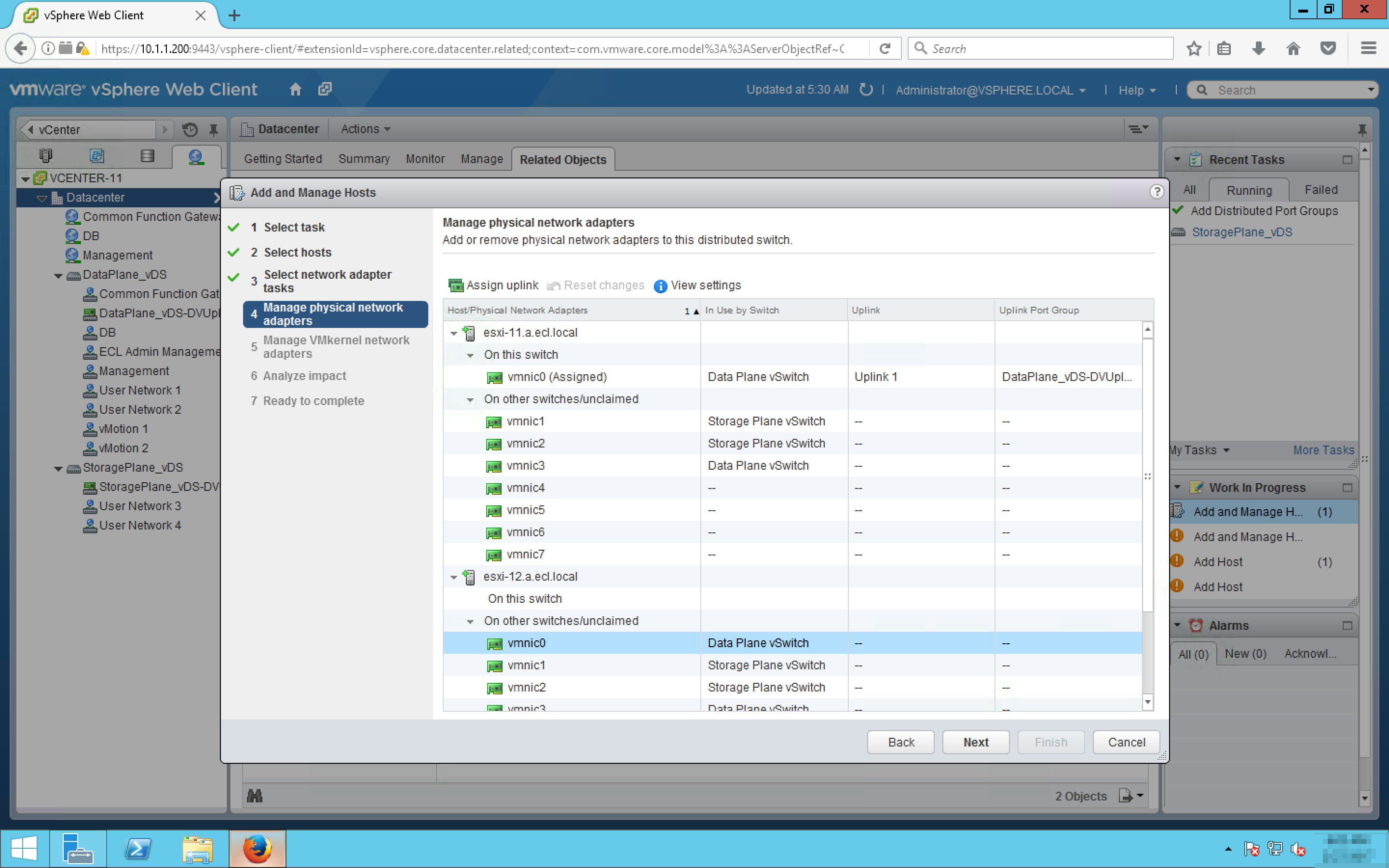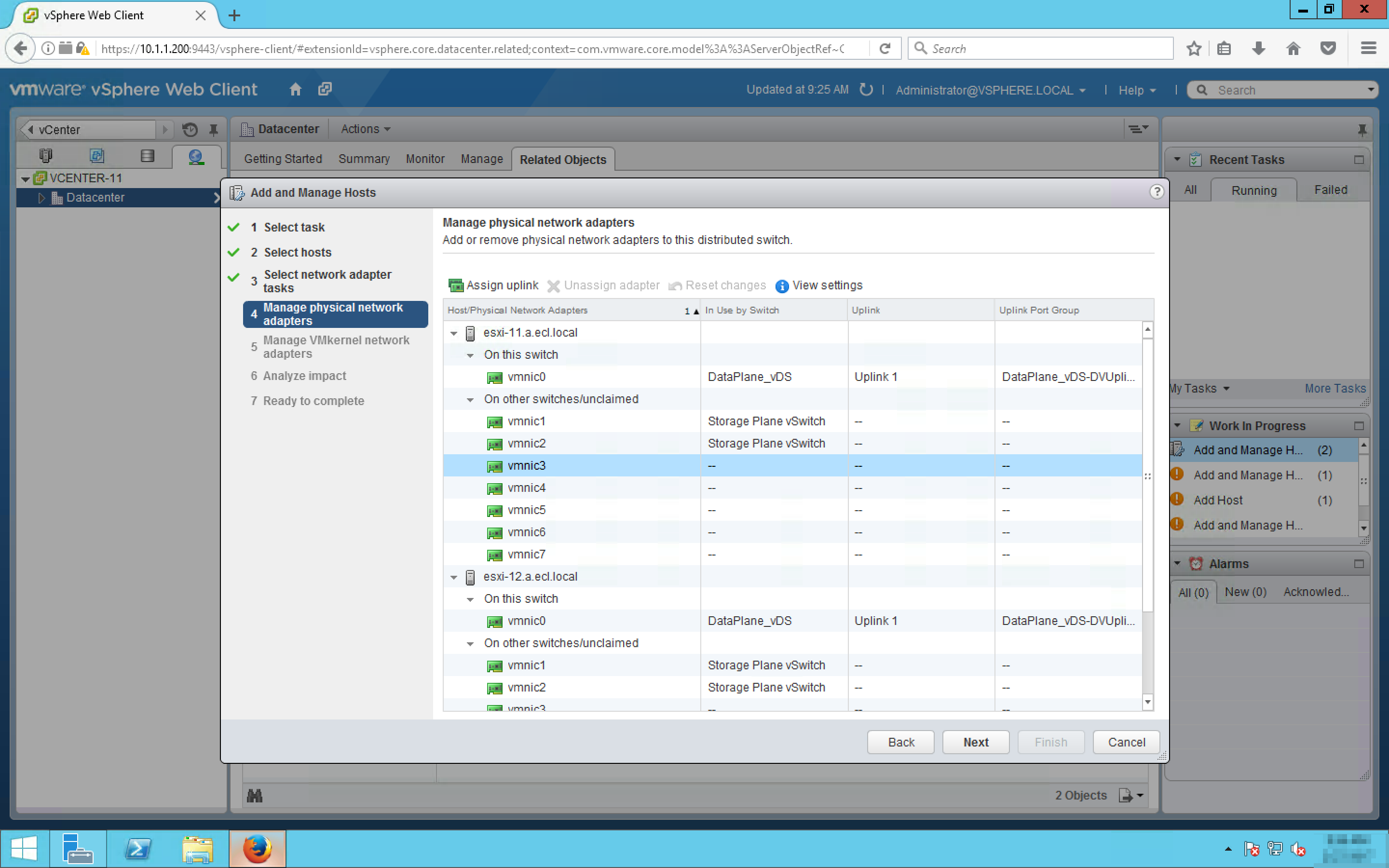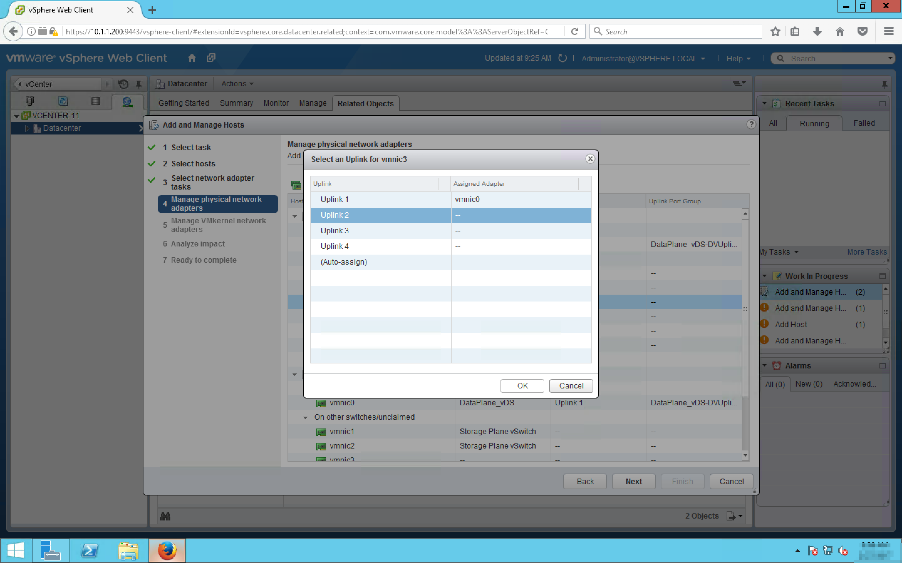 同様にすべてのESXiホストに[uplink]を追加し、[Next]をクリックします。