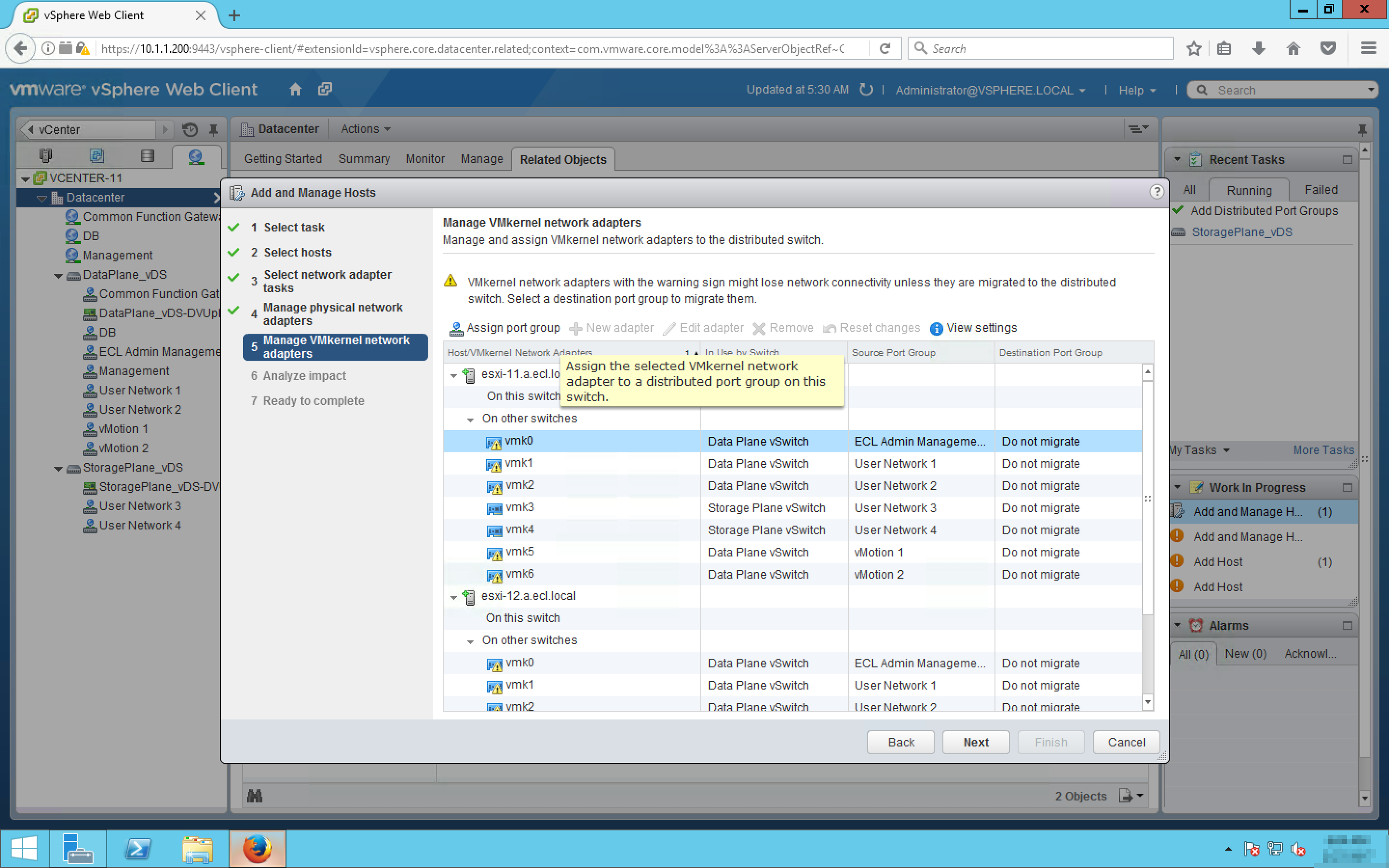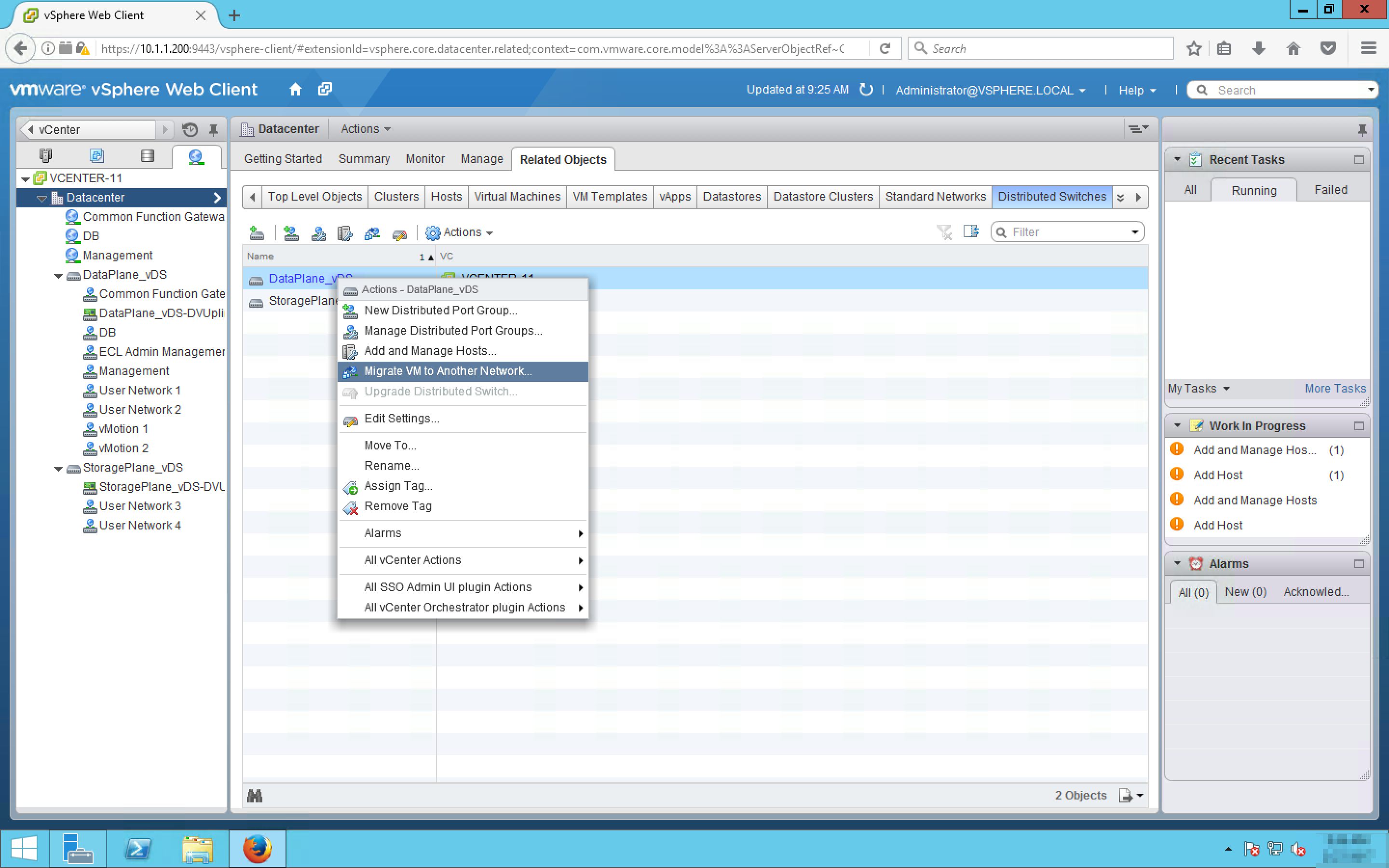 作成したvDSを右クリックし、[Migrate VM to Another Network]をクリックします。