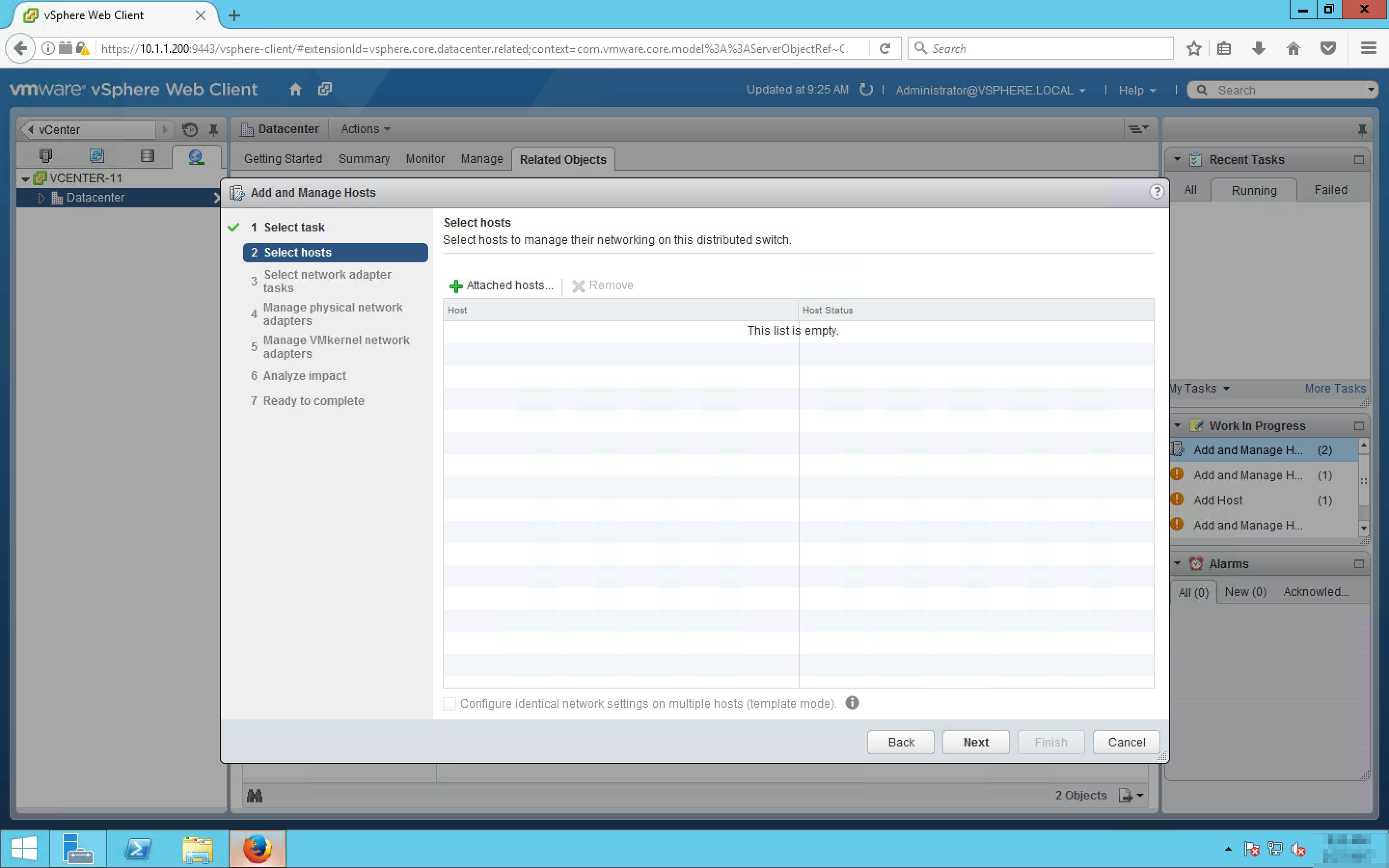 [2 Select hosts]にて、[Attached hosts]をクリックします。