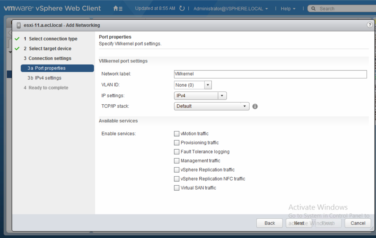 すべてのVMkernelポートに対し、同様の手順を実施し、[Next]をクリックします。
