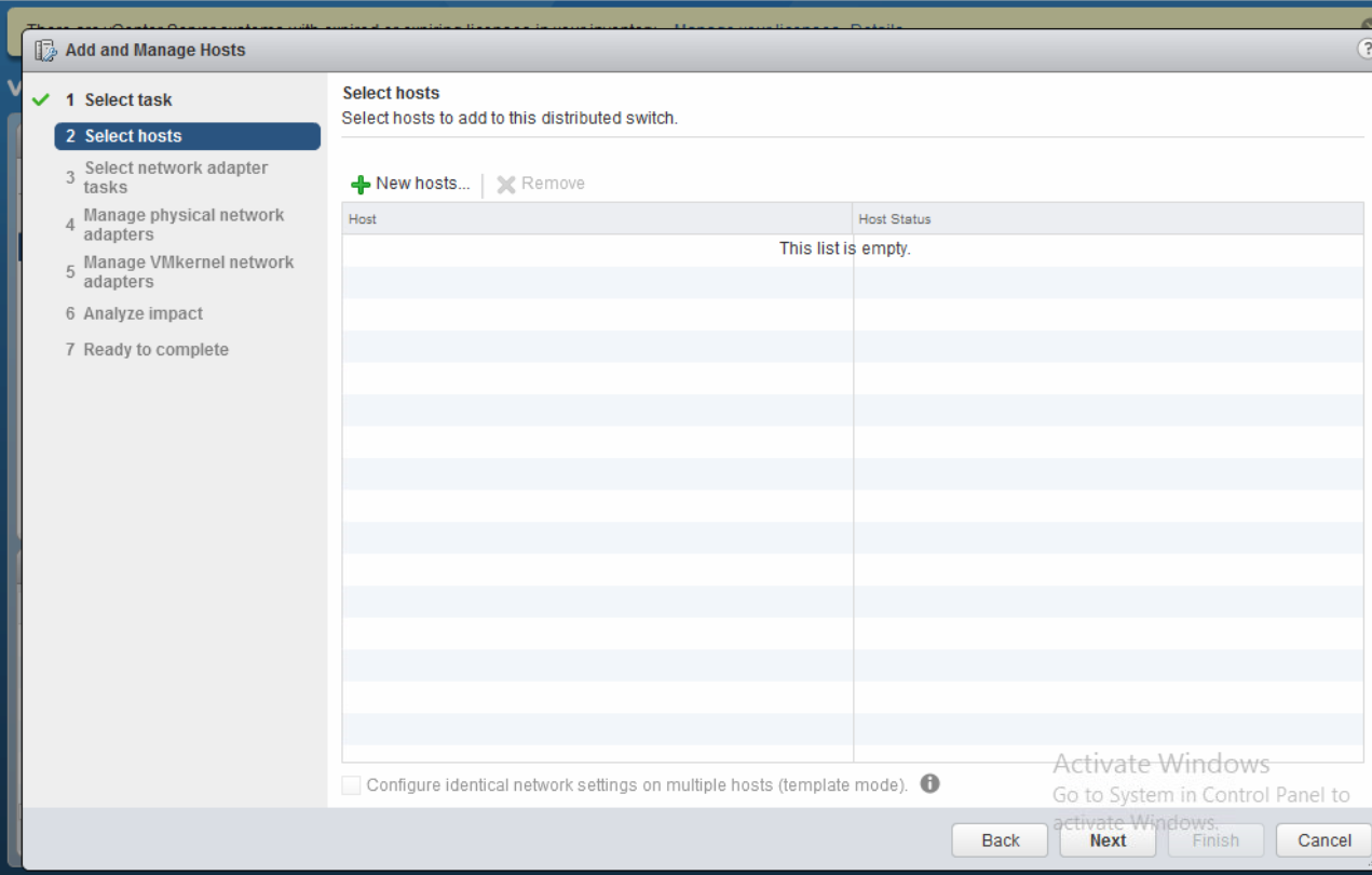 [2 Select hosts]にて、[New Hosts]をクリックします。