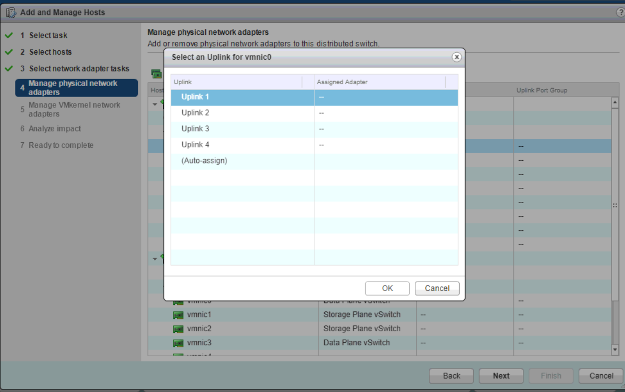 [4 Manage physical network adapters]にて、[vmnic]を選択し、[Assign uplink]をクリックします。
