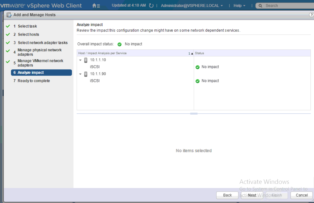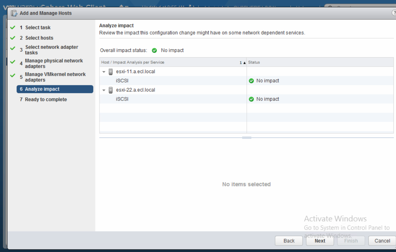 [6 Analyze impact]にて、[Overall impact status:]が[No impact]であることを確認し、[Next]をクリックします。