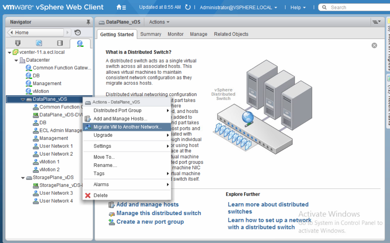 作成したvDSを右クリックし、[Migrate VM to Another Network]をクリックします。