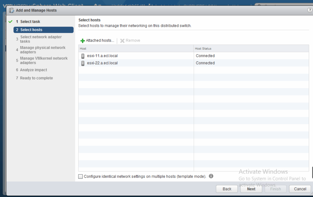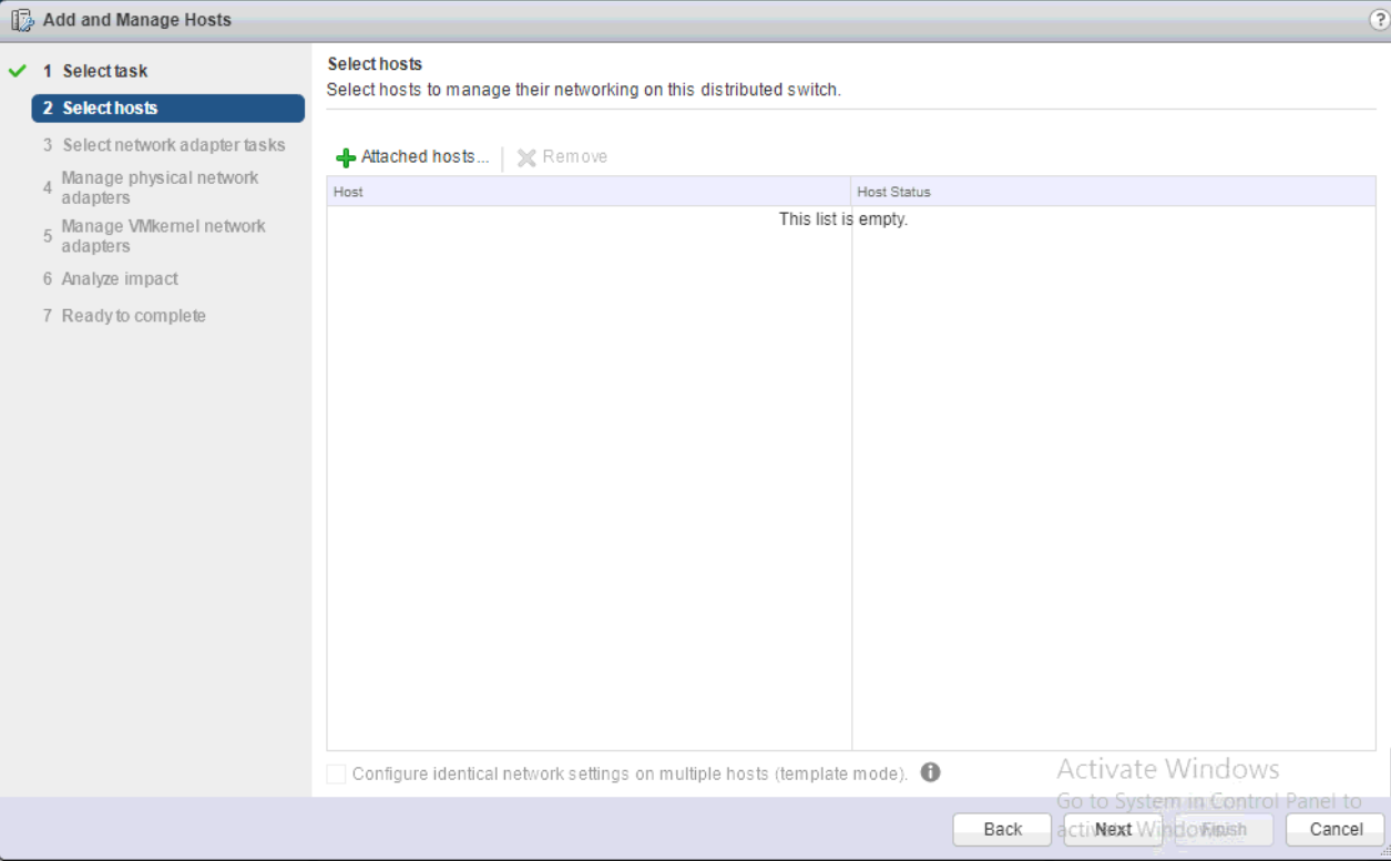 [2 Select hosts]にて、[Attached hosts]をクリックします。