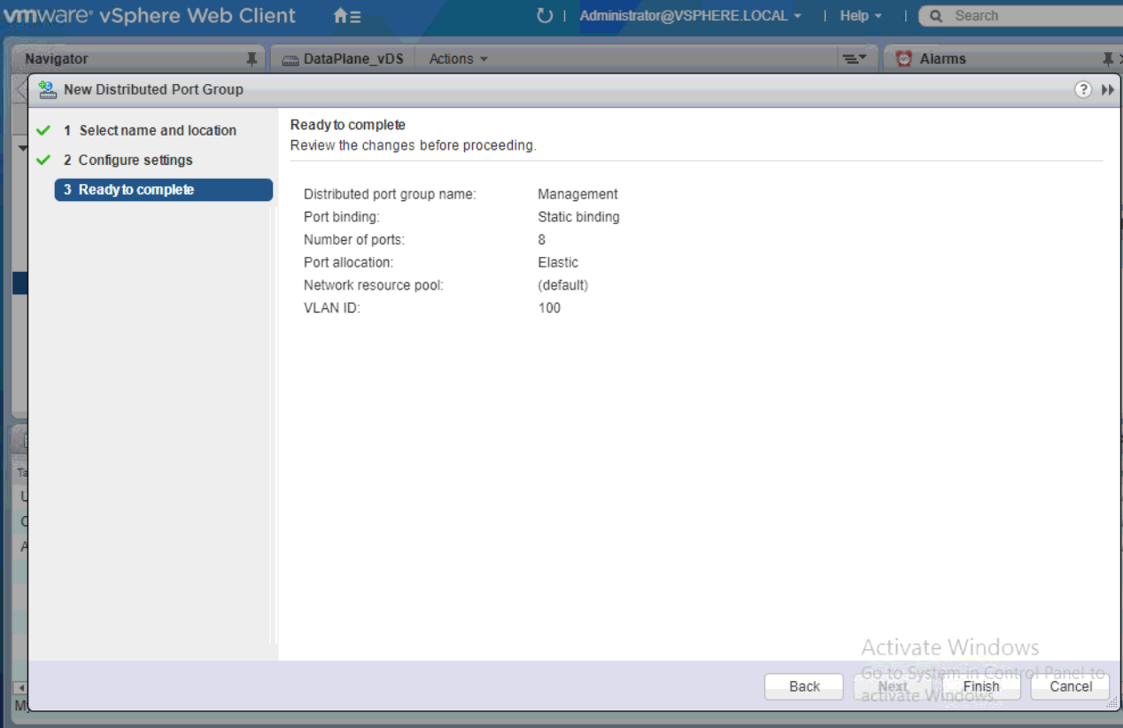 vSphere Web Client のインベントリより、[vCenter] > [Inventory Trees]配下の[Networking]をクリックします。 作成したvDSを右クリックし、[New Distributed Port Group]をクリックします。