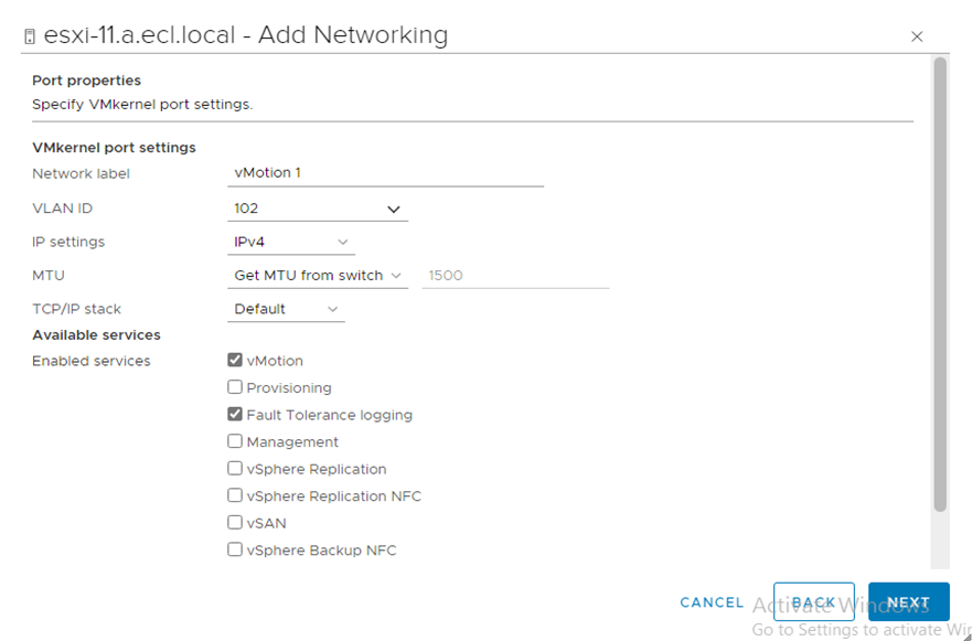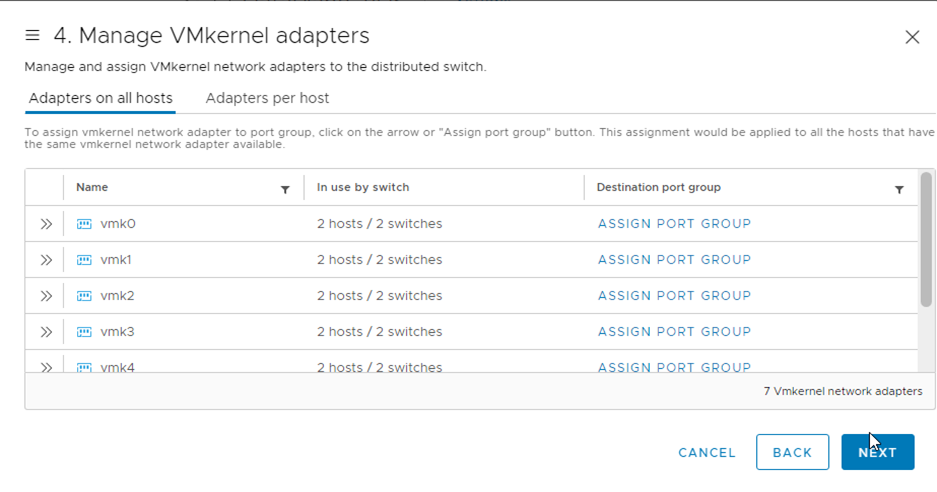 すべてのVMkernelポートに対し同様の手順を実施し、[NEXT]をクリックします。
