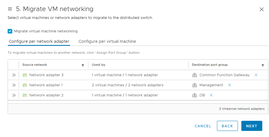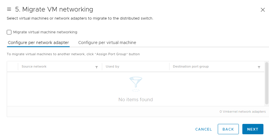 「5 Migrate VM networking」にて設定を変更せず[NEXT]をクリックします。