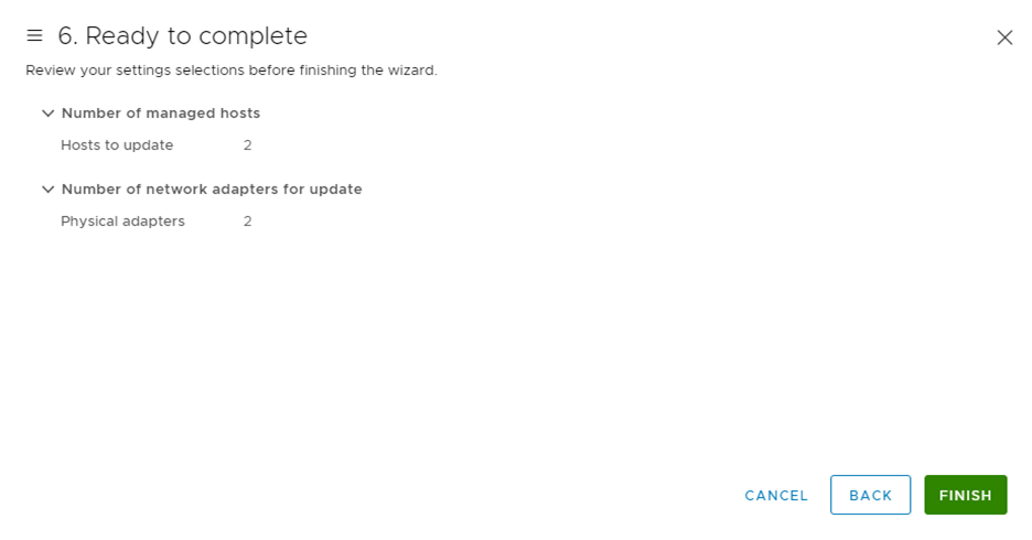 「6 Ready to complete」にて設定を確認し、[FINISH]をクリックします。