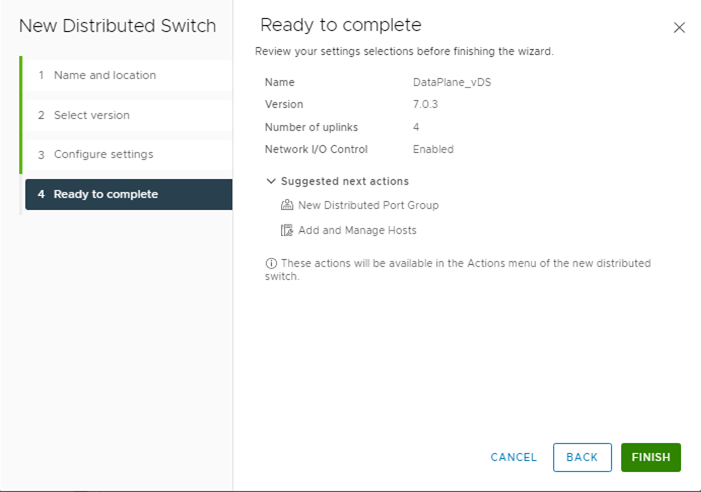 vSphereマネージメント用(データプレーン)/vSphere仮想マシン通信用(データプレーン)/vSphere vMotion用(データプレーン)/ストレージ接続用(ストレージプレーン)の合計4IDの作成完了 |