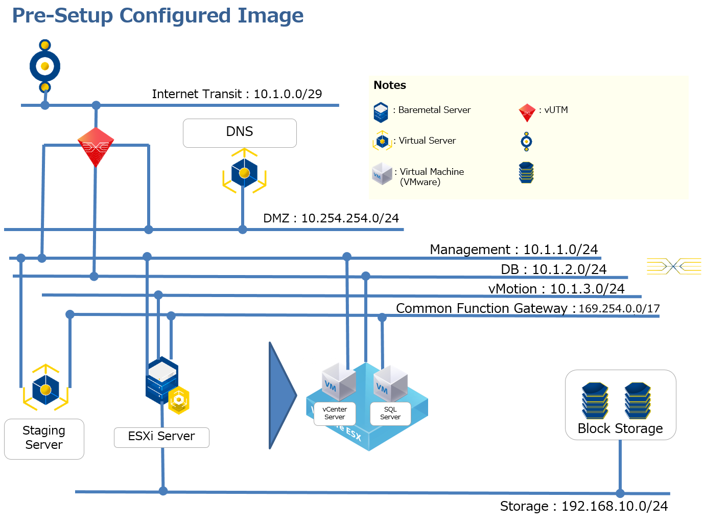 本書で扱う構成を構築する場合に求められるSDPF固有の操作を中心に紹介します。vSphere ESXiの一般的な操作方法については、記載しておりませんのでご注意ください。