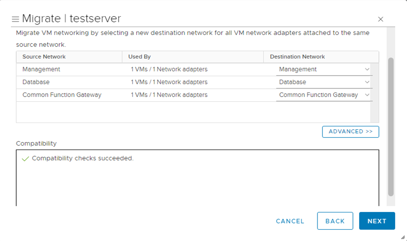 移行先のネットワークを確認し、[NEXT]をクリックします。