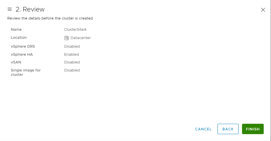 「2.Review」画面が表示されるので、内容を確認して[FINISH]をクリックします。