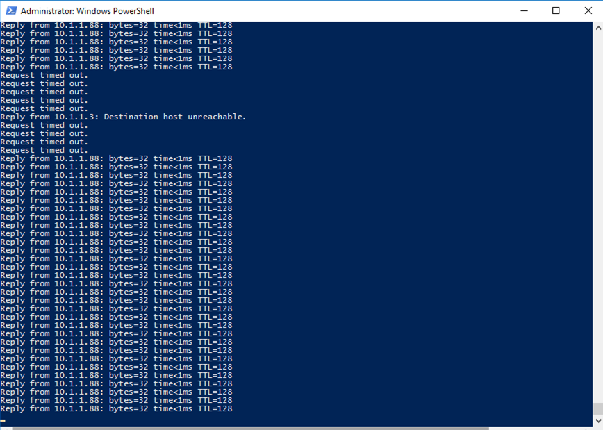 pingコマンドを実行した「Command Prompt」を確認し、[Shut Down]実行後に、[time out]していることを確認します。