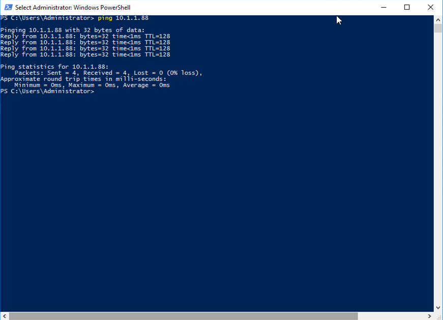 ECL サーバーインスタンス インスタンスのスタートメニューから「Command Prompt」または「Windows PowerShell」を開き、試験対象の仮想マシンにpingコマンドを実行し、試験用仮想マシンと疎通可能なことを確認します。