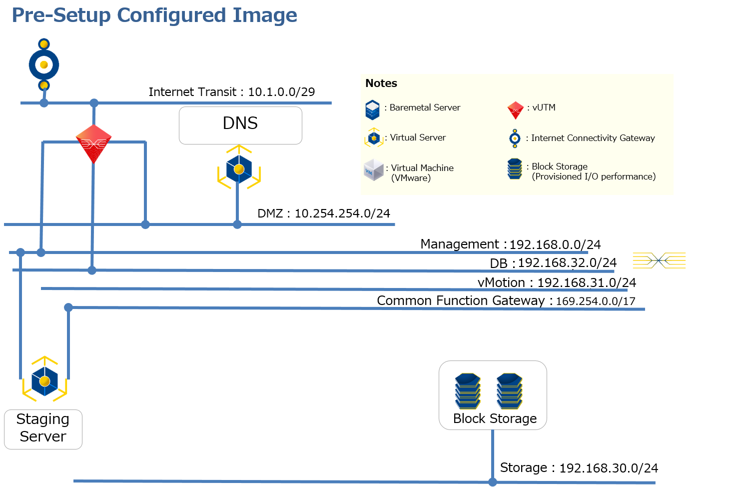 ロジカルネットワークやvUTMの作成、サーバーインスタンスの作成など一般的な操作について記載しておりません。一般的な操作は、SDPF詳細情報やチュートリアルをご参照ください。