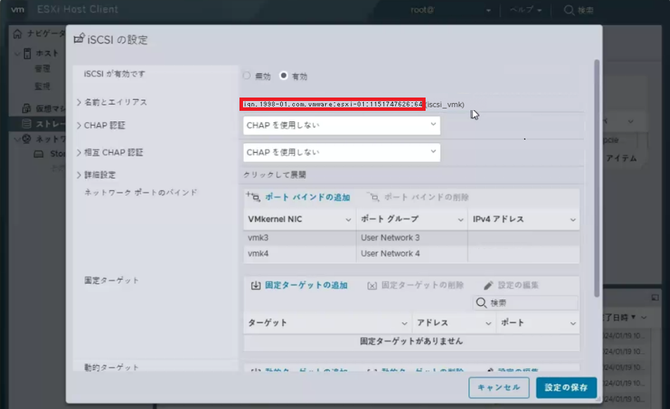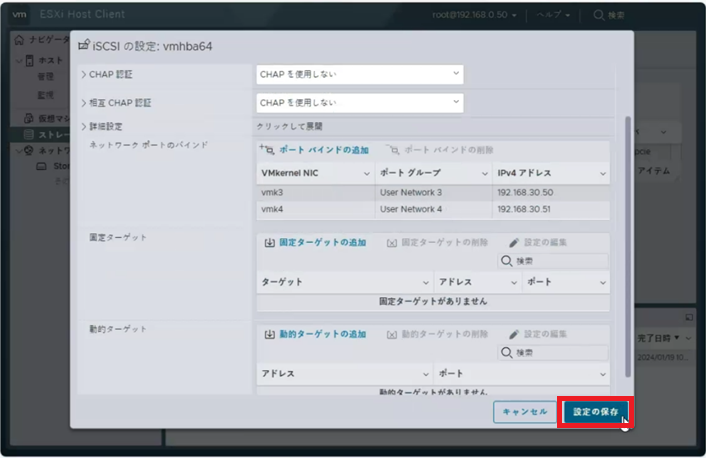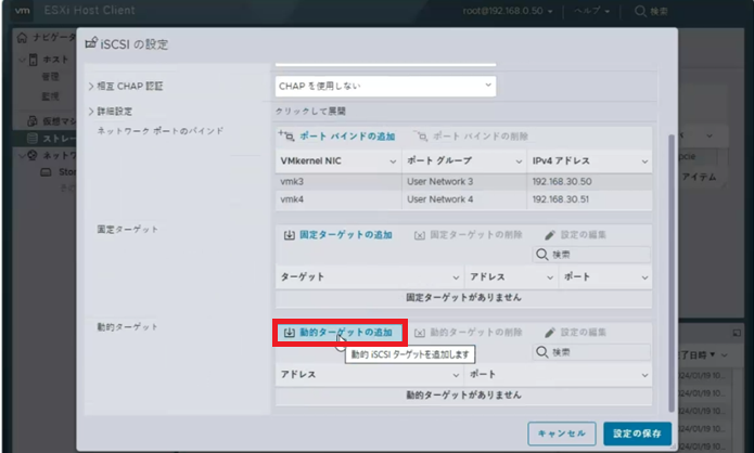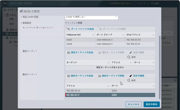 ハイパーバイザー(vSphere ESXi)にログインする際は以下の接続情報を利用します。