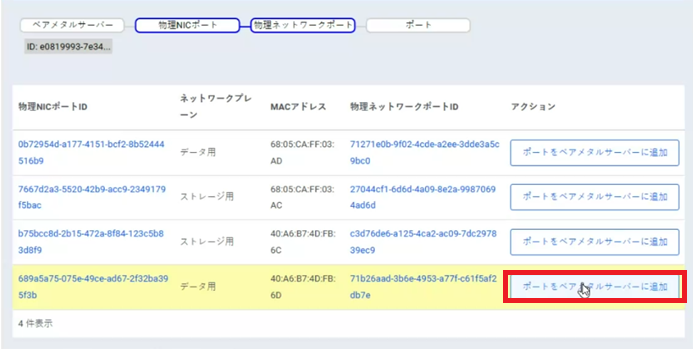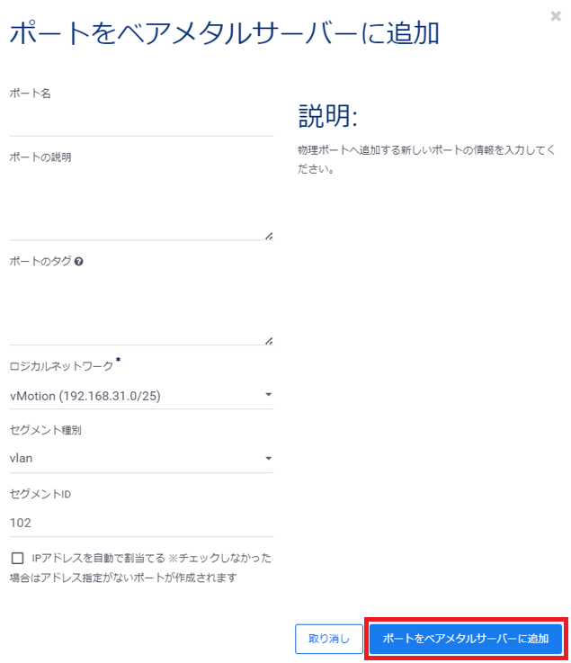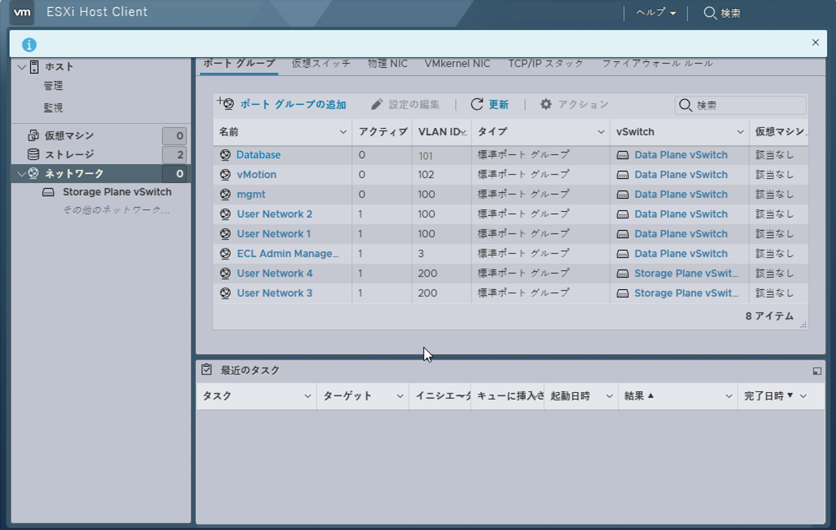 vSphereマネージメント用(データプレーン)/vSphereサーバーインスタンス通信用(データプレーン)/vSphere vMotion用(データプレーン)/ストレージ接続用(ストレージプレーン)の合計4IDの作成完了 |