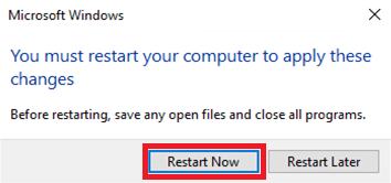 すべてのダイアログを閉じると再起動を促されるので、[Restart Now]をクリックします。