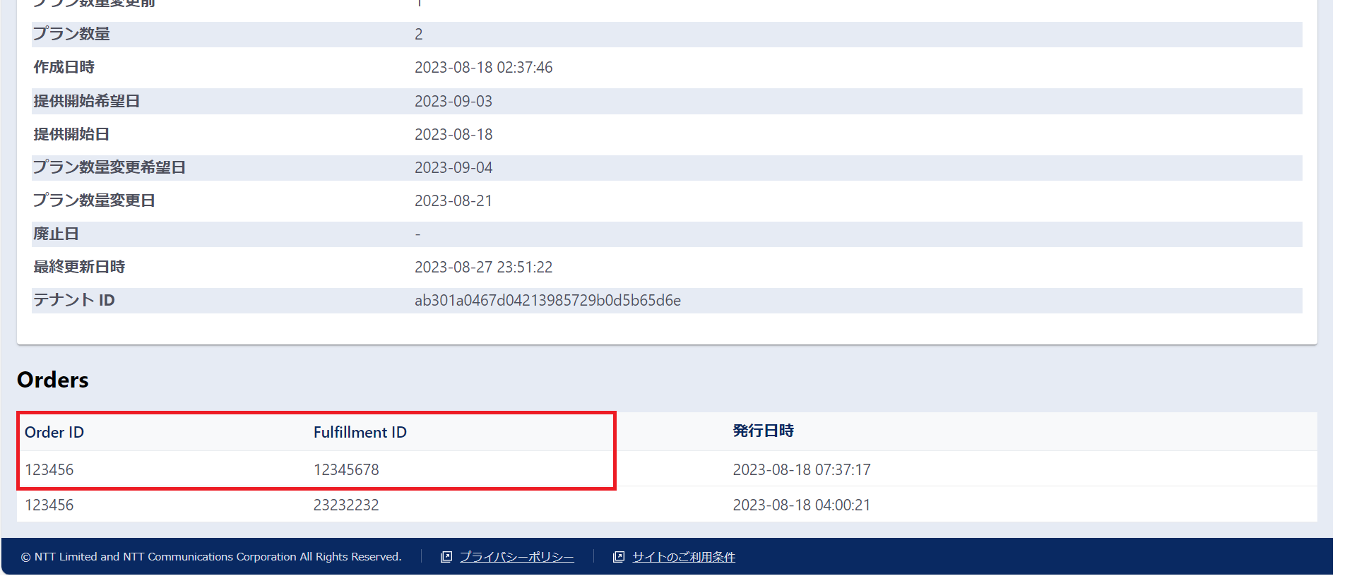 ライセンスの詳細が表示されます。画面下部に存在する「Orders」からOrder IDとFulfillment IDが確認可能です。