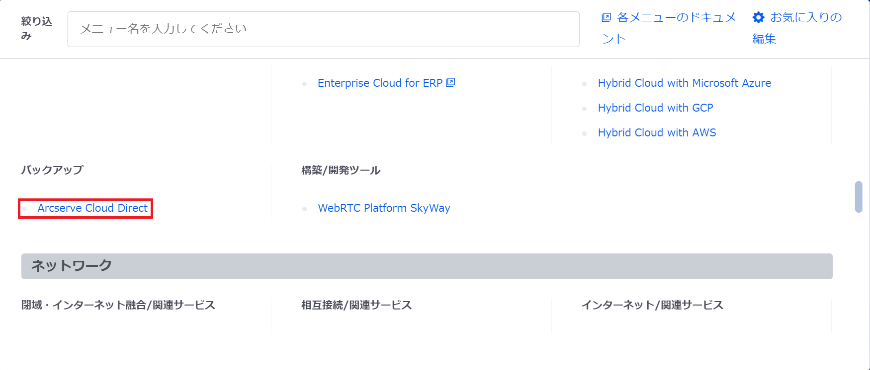 カスタマーポータルへログインし、サービスメニューから「Arcserve Cloud Direct」を選択し、次画面に遷移します。