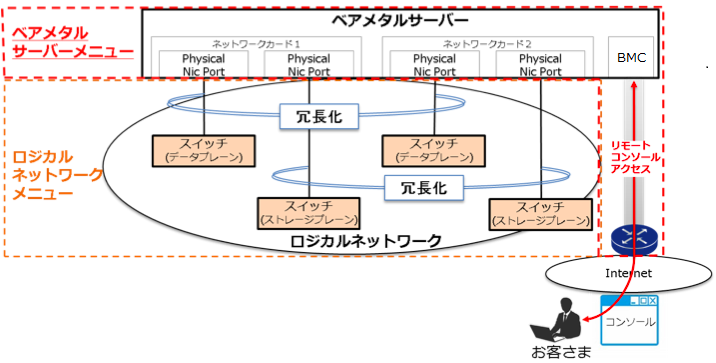 お客さまには権限を制限したユーザーが提供されます。以下の機能以外は使用しないでください。PXEブートを行う場合、お客さまご自身でPXEブートを実施し、システムを構築してください。その際には、お客さまのDHCPもしくはロジカルネットワークのDHCPと競合しないように設定を行ってください。