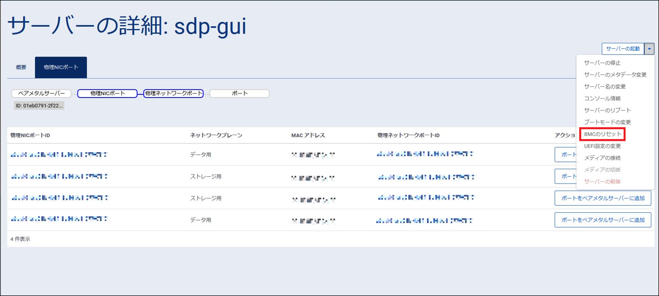 本サービスでは、 BMC の不具合で筐体の監視やメディア接続機能等に不整合が発生した際に、お客様にてBMCのリセットを実施いただけます。