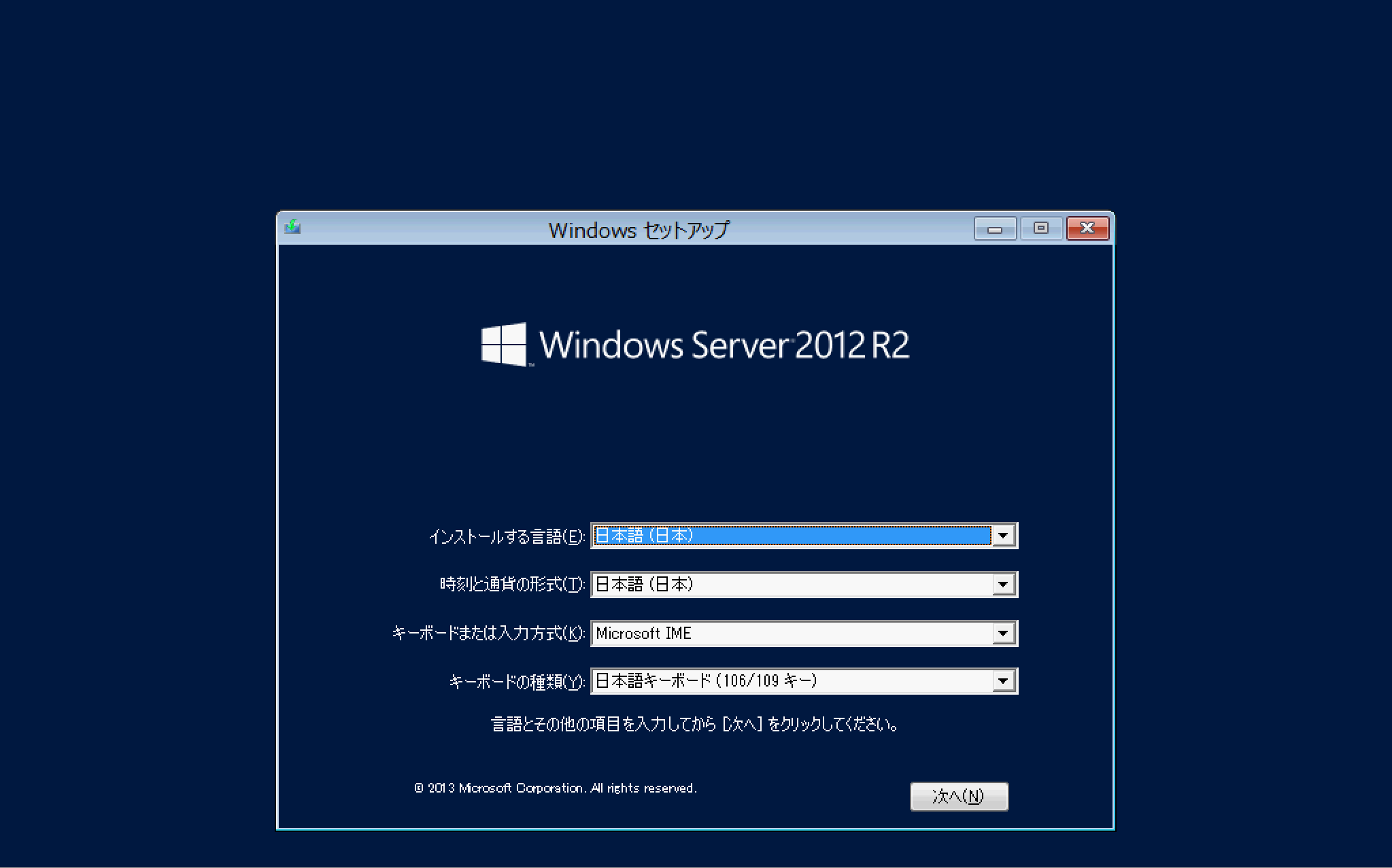 以下の内容は、Windows Server 2012 R2のISOイメージをベアメタルサーバーへインストールする場合の手順例になります。