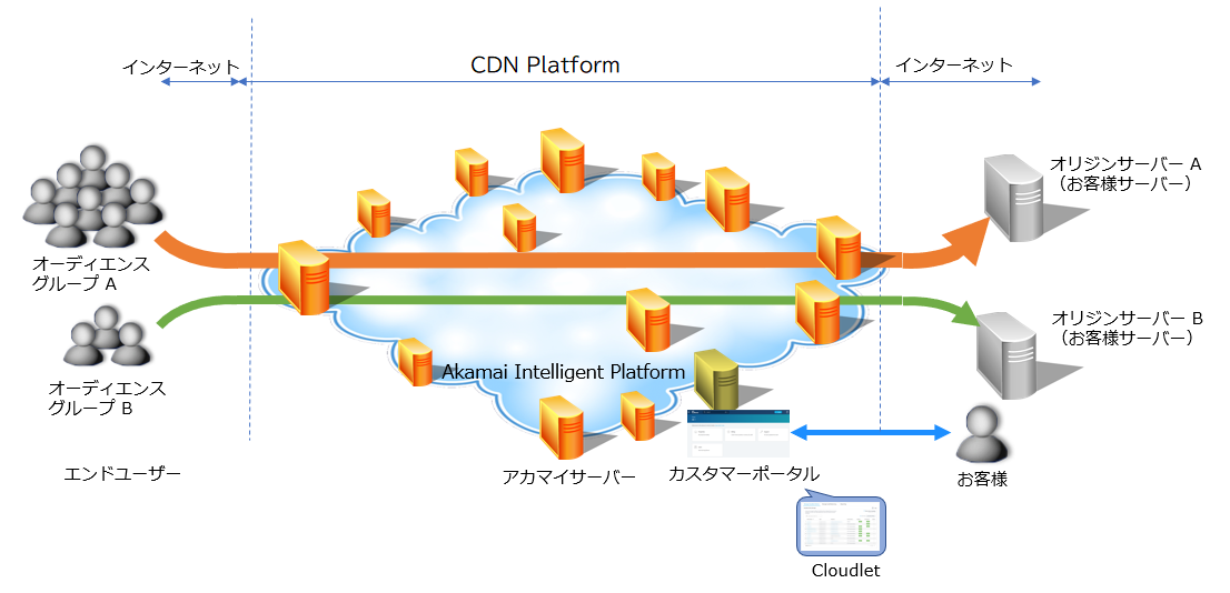 オーディエンスグループの分割はエンドユーザーに近いところにある アカマイサーバーで行われているため、利用者のデータセンターまでのアクセスに要する時間や、それに付随するパフォーマンスへの悪影響をなくすことができます。