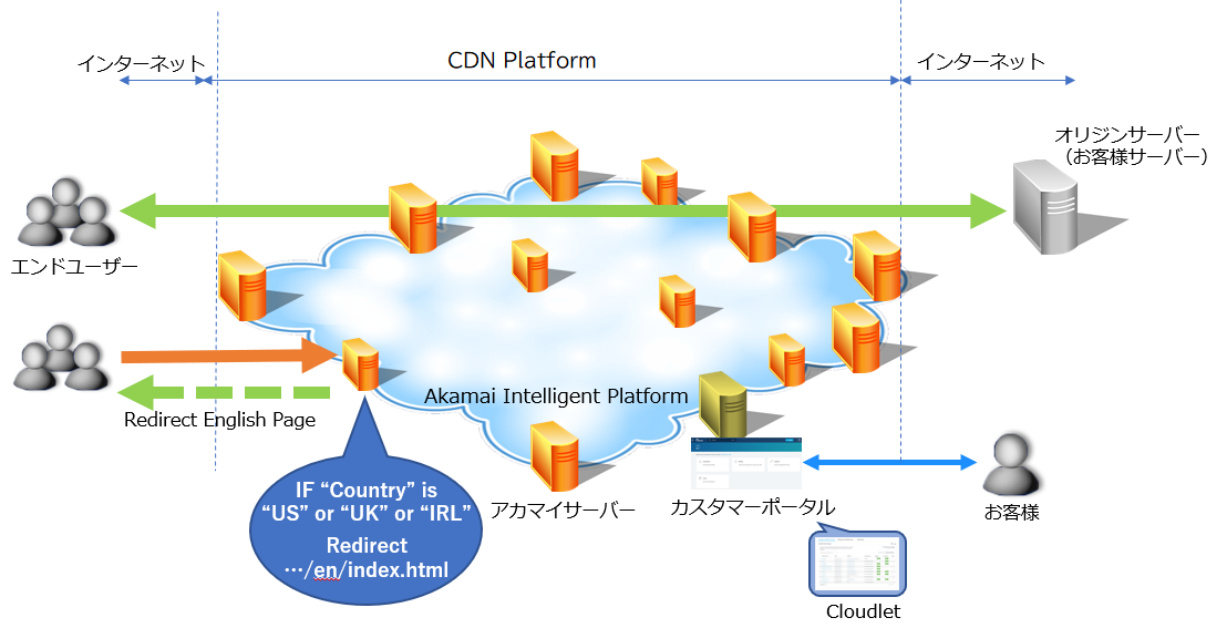 Edge Redirector (Cloudlet) (以下、本メニュー)とは、クエリストリング、プロトコル、ヘッダなど各種条件に応じてリダイレクトを設定、管理できる機能です。