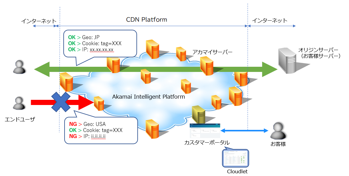 IPアドレスや地域条件など、エンドユーザーの属性によってアクセスを制御する機能です。