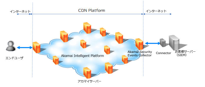 SIEM Integration(以下、本メニュー)とは、グローバルに分散された Akamai Intelligent Platform で検知/ブロックされた Security Event の SIEM 向けリアルタイム配信機能です。