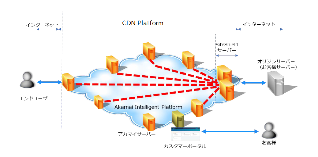 Site Shield(以下、本メニュー)とは、お客様オリジンサーバーにアクセスするAkamaiエッジサーバーを限定し、そのIPアドレス群をお客様に公開することで、お客様オリジンサーバーのFirewallでアクセスを絞り込むことを可能にするサービスです。