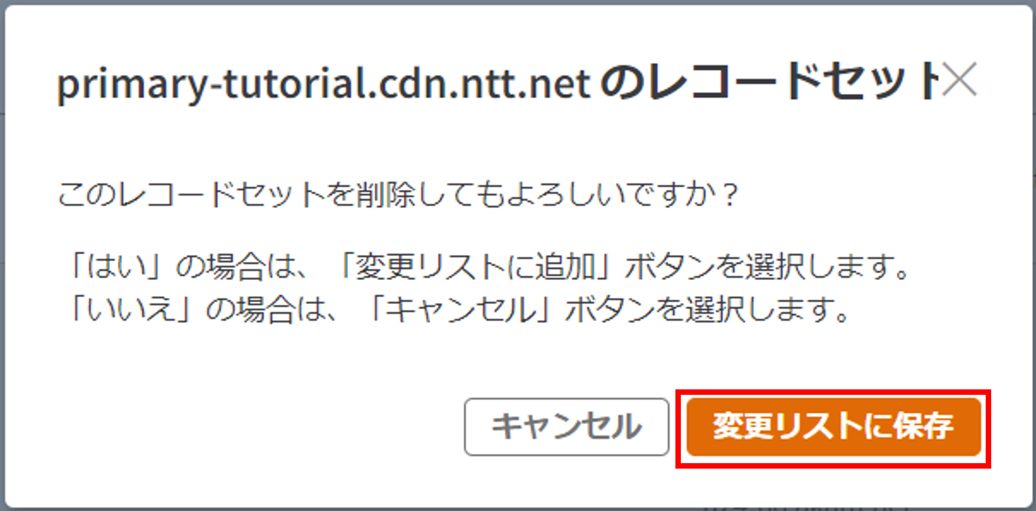 確認画面が表示されます。「変更リストに保存」をクリックします。