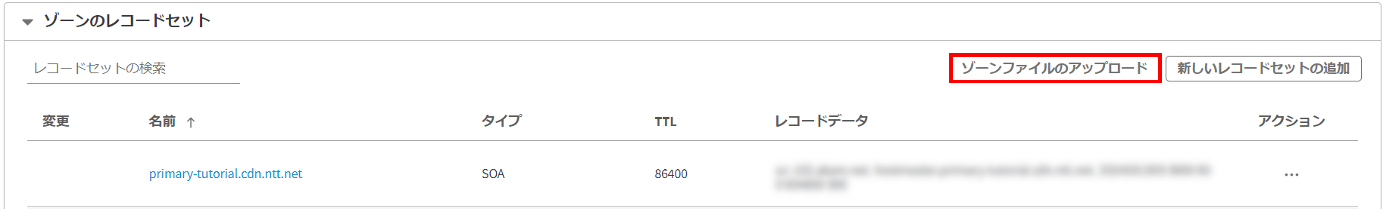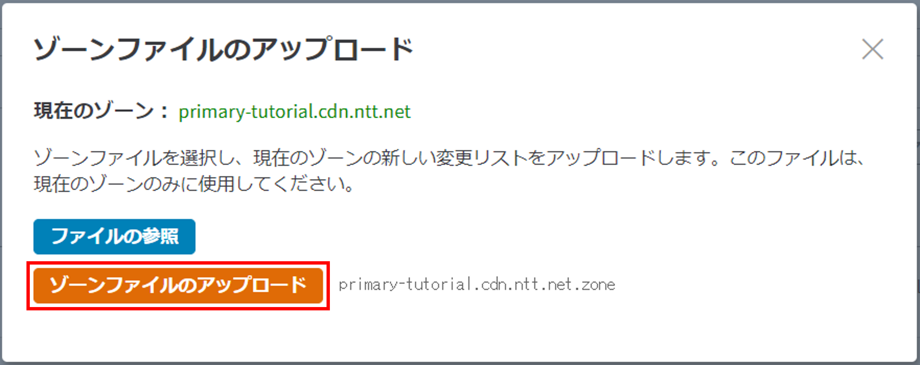 「ファイルの参照」からアップロードするファイルを選択し、「ゾーンファイルのアップロード」をクリックします。