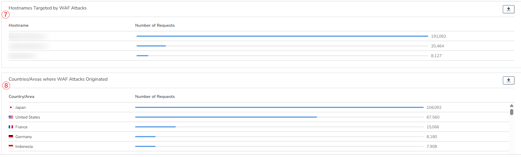 ⑦ Hostnames Targeted by WAF Attacks