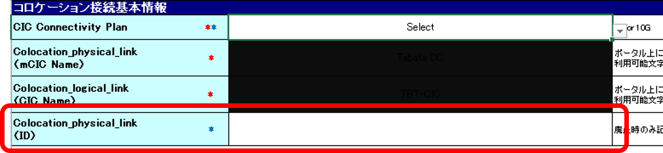 ③申込書の「Colocation_physical_link(ID)」は廃止時のみ記載が必要です。 SDPFポータル画面の[概要]欄の「ID」を申込書に記載願います。