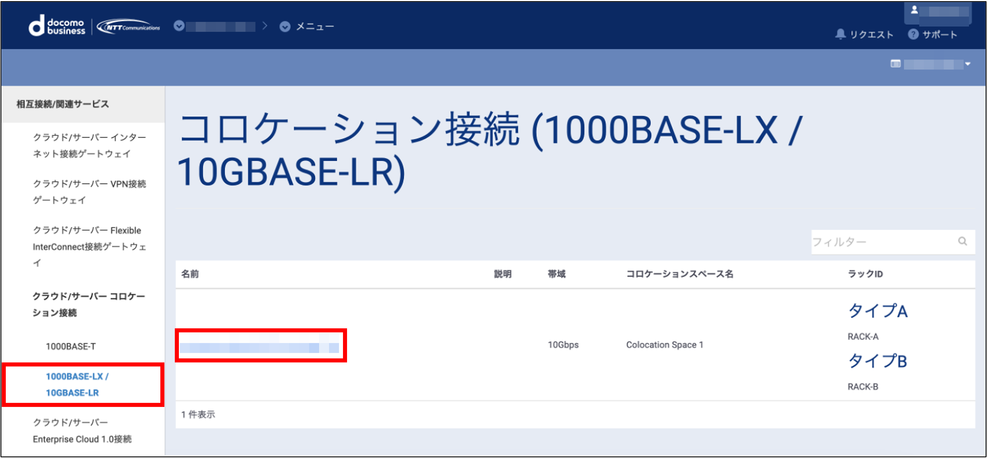 CICの初回お申込み後、物理的な接続が完了すると、お申込時に入力いただいた情報が確認できます。 「相互接続/関連サービス」→「クラウド/サーバー コロケーション接続 1000BASE-LX/10GBASE-LR」をクリックします。