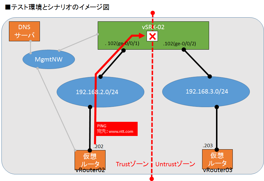 上記のため、vSRXが再度名前解決可能となるまでの間にFQDNに紐づけられたIPアドレスが変更されてしまうと、クライアントが正しいIPアドレスに通信しようとしてもポリシーの条件に当てはまりません。