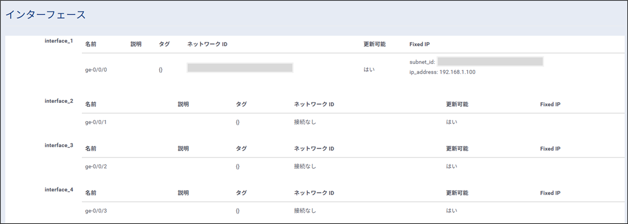 ファイアウォール(vSRX)のインターフェイス設定を更新可能かステータスを参照できます。