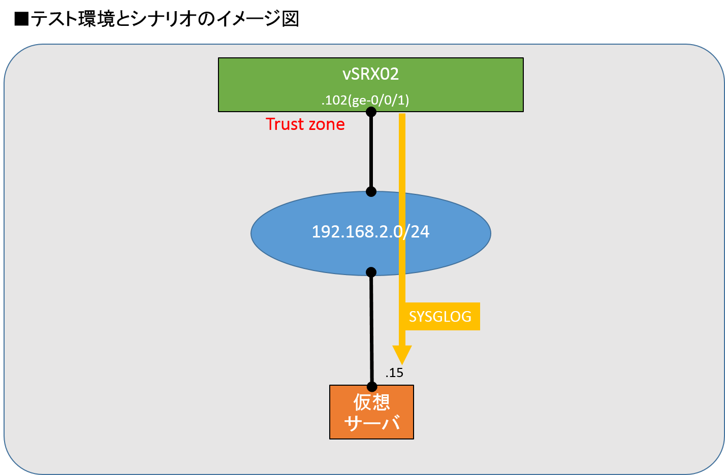 • 取得したログ情報を外部のSyslogサーバー(192.168.2.15)で保存したい