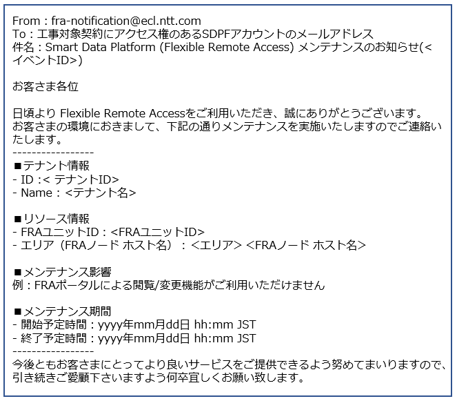 緊急時などの工事内容によりメンテナンスウィンドウ外での実施となる可能性がございます