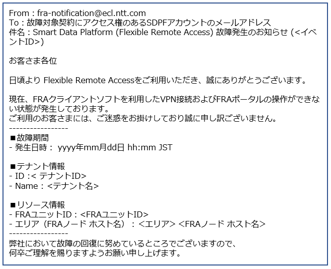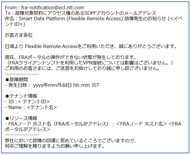 故障にあたらない事象はサービス影響ありとは見なさず、故障通知は行いません