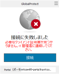 接続に失敗しました 必要なクライアント証明書が見つかりません。IT管理者に連絡してください。 |