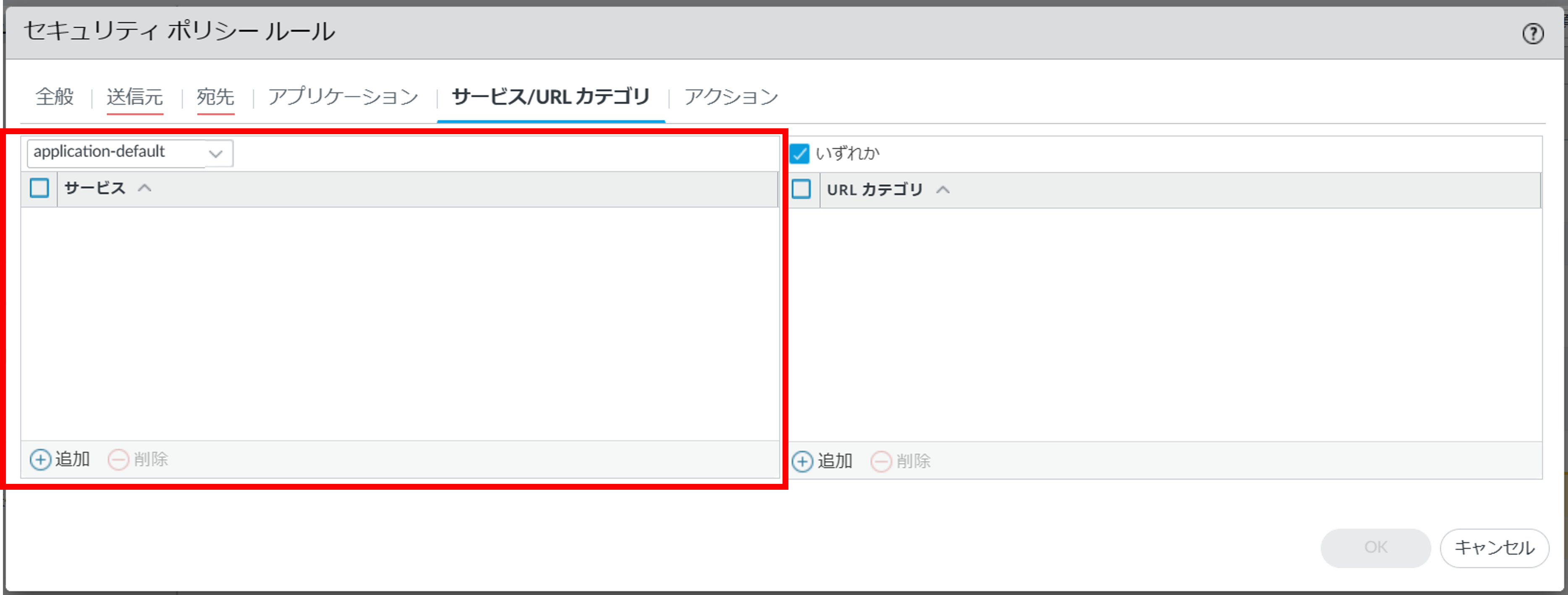 図2.8.7.3.5. セキュリティポリシールール(サービス/URLカテゴリ)¶