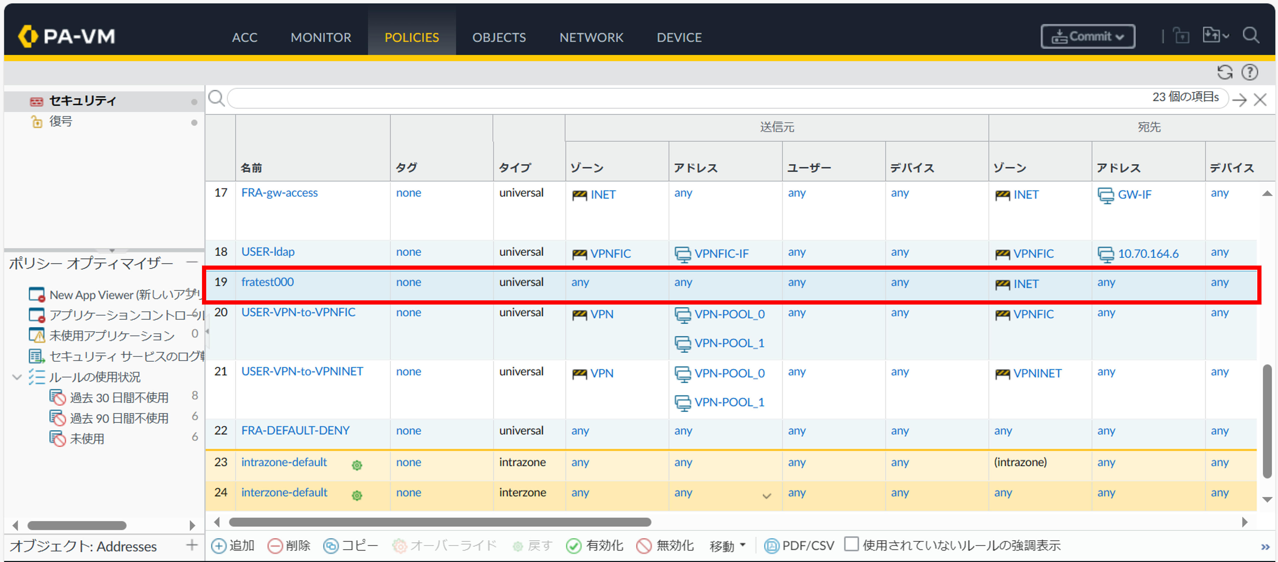 以下のように変更可能なルールの直上に移動しポリシーの移動が完了となります。