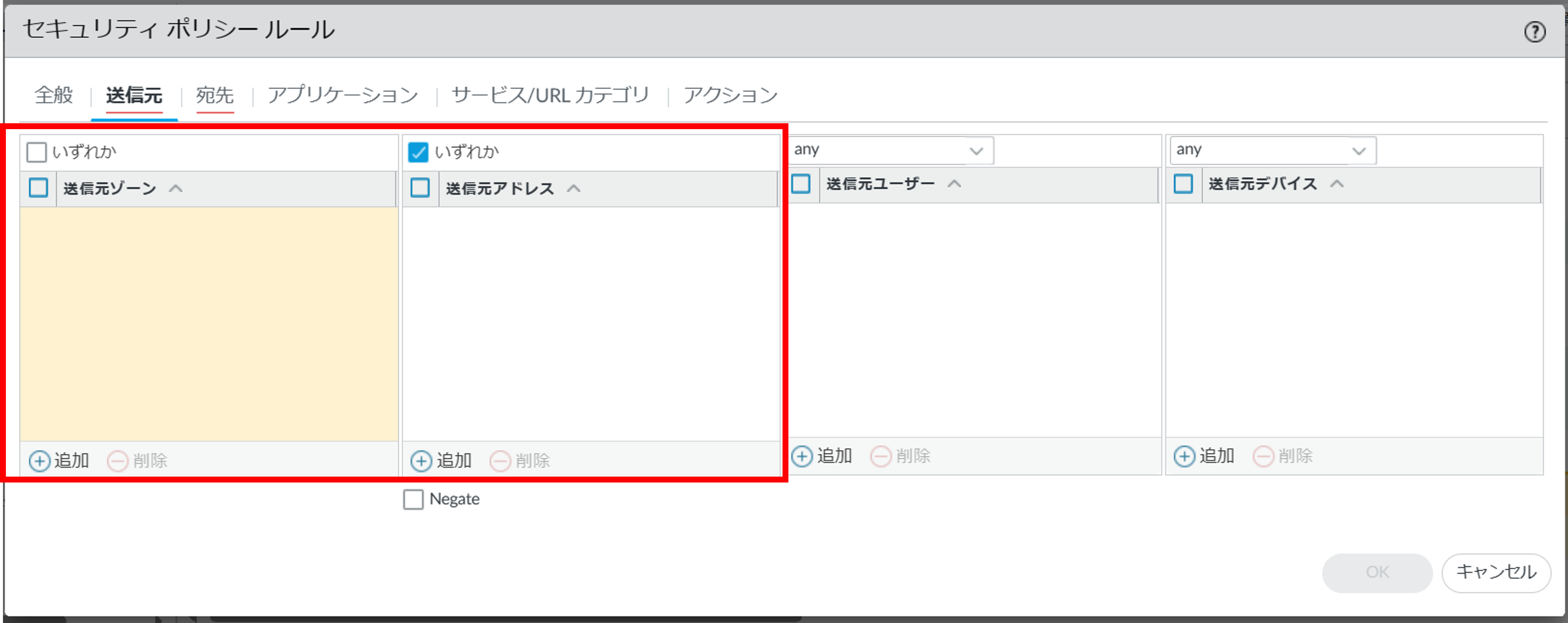図2.8.7.3.3. セキュリティポリシールール(送信元)¶