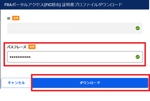 パスフレーズを入力し[ダウンロード]ボタンを押下します。