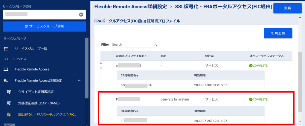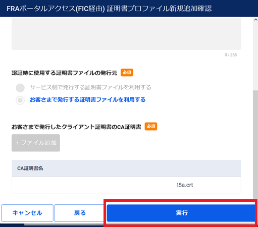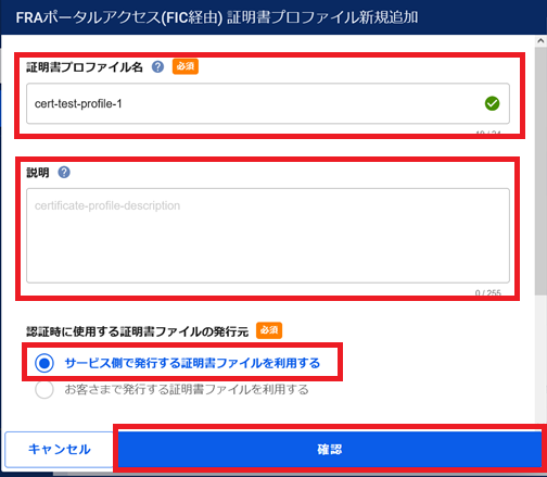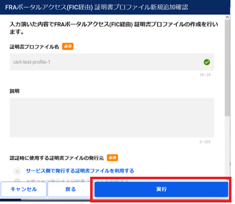 2.8.7.4. FRAポータルアクセス(FIC経由) 証明書プロファイルの変更手順(サービス側で用意した証明書を利用する手順)¶