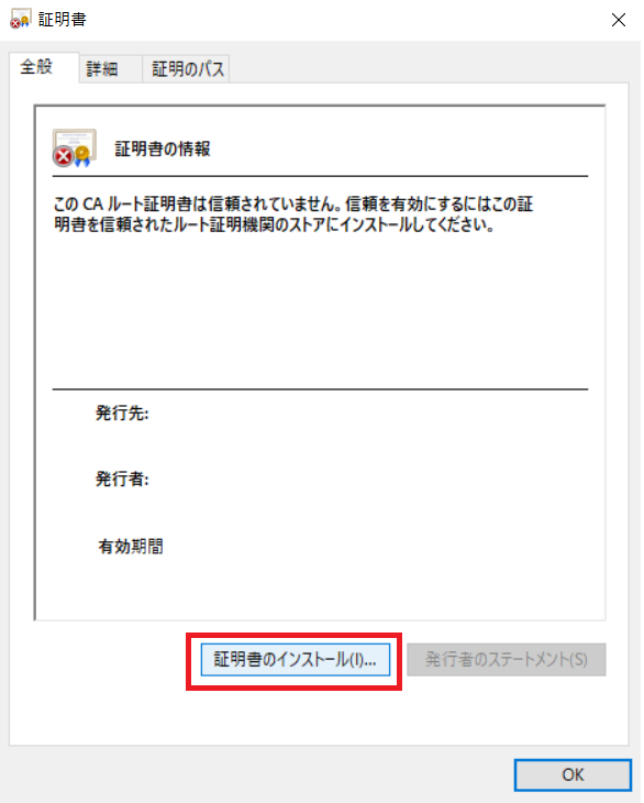 [証明書のインストール]をクリックします。